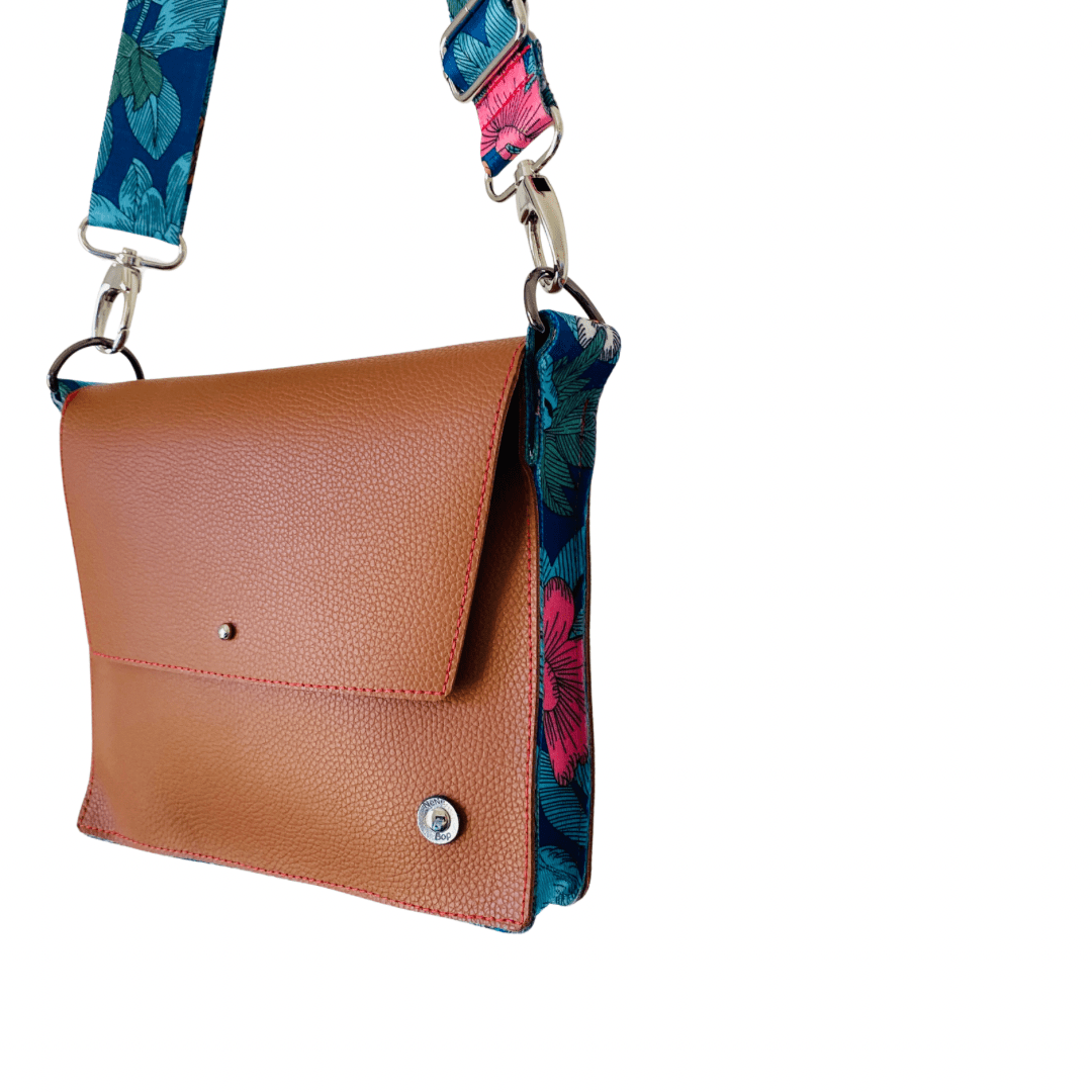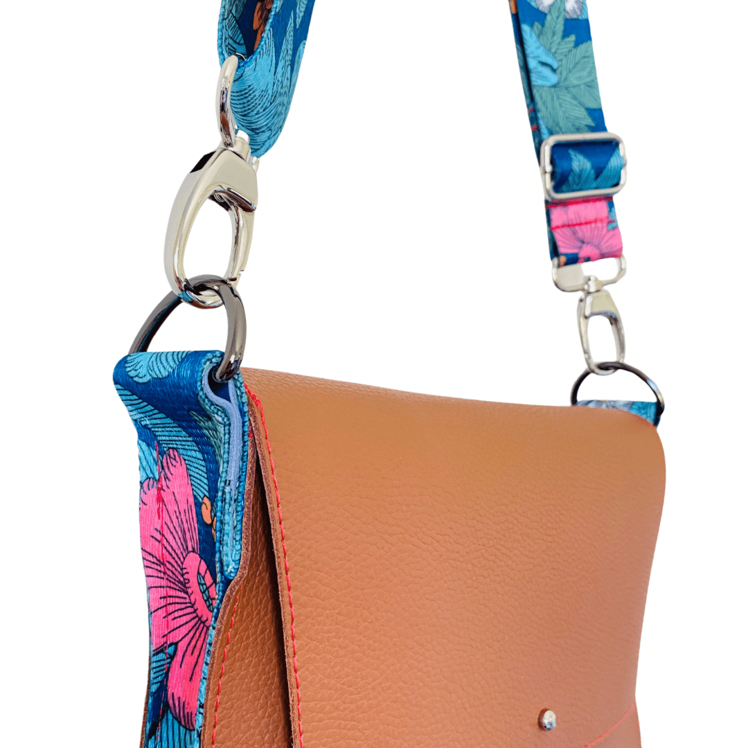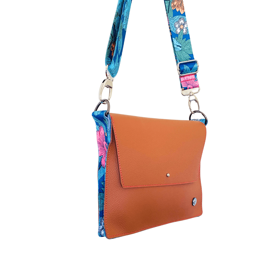 ALLY Leather Crossbody bag - Midi - Tan Floral