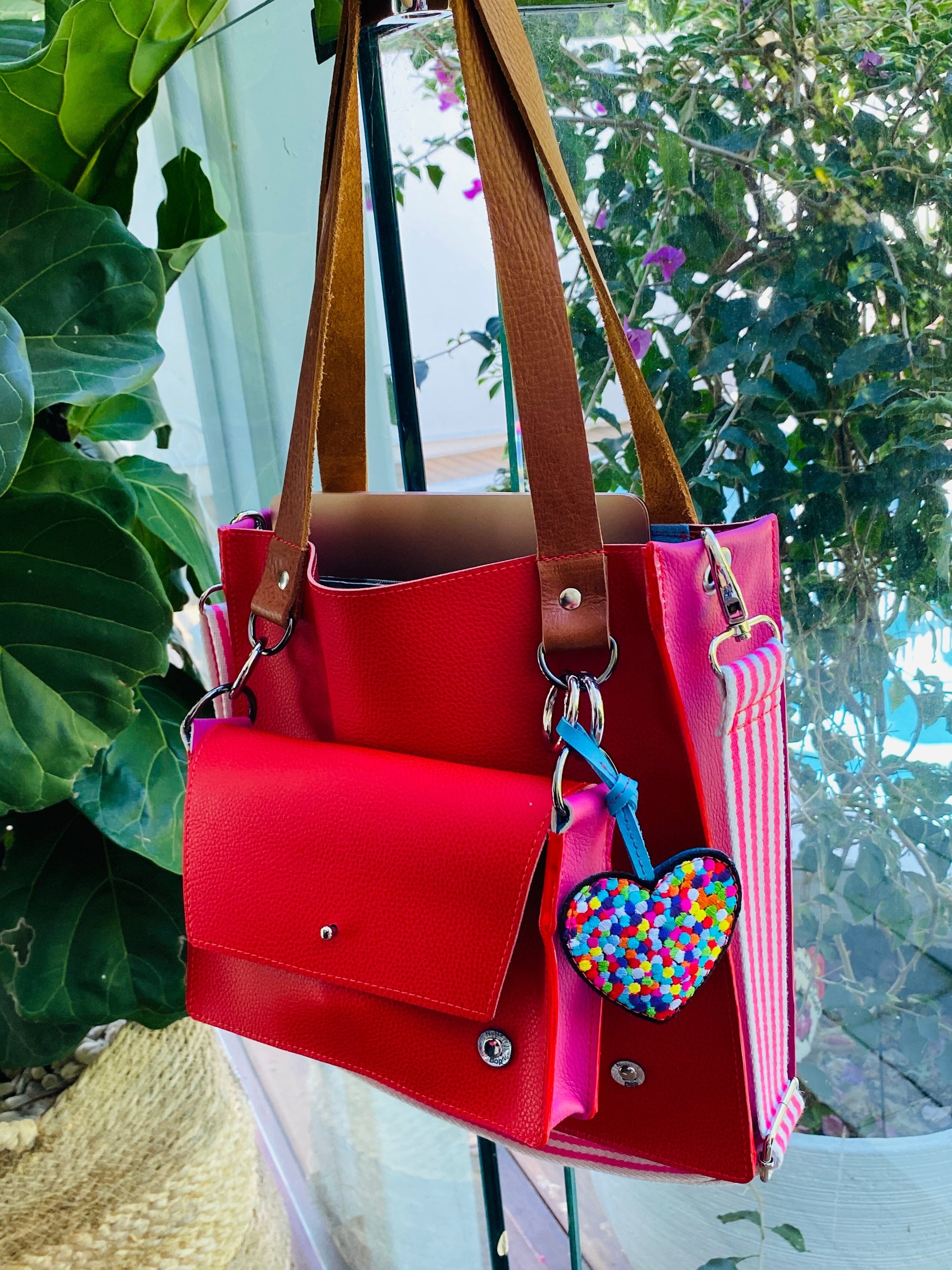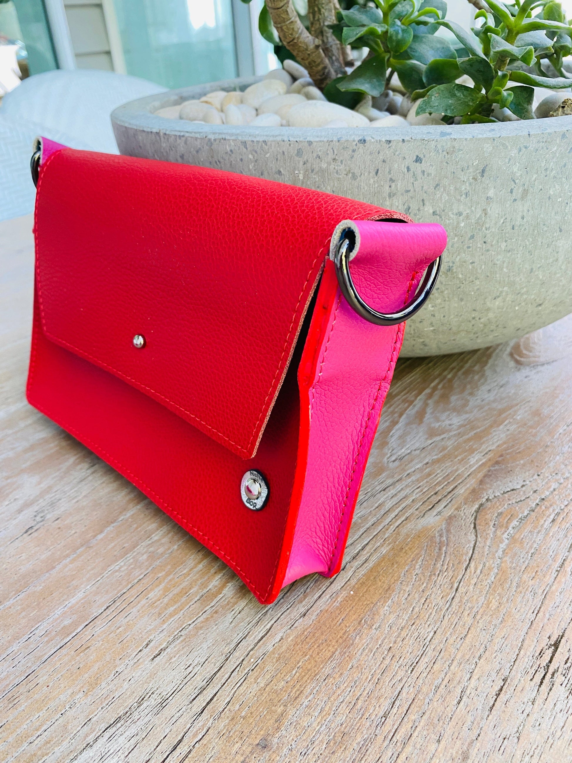 ALLY Mini - 4 in 1 Leather Bag - Red/Pink