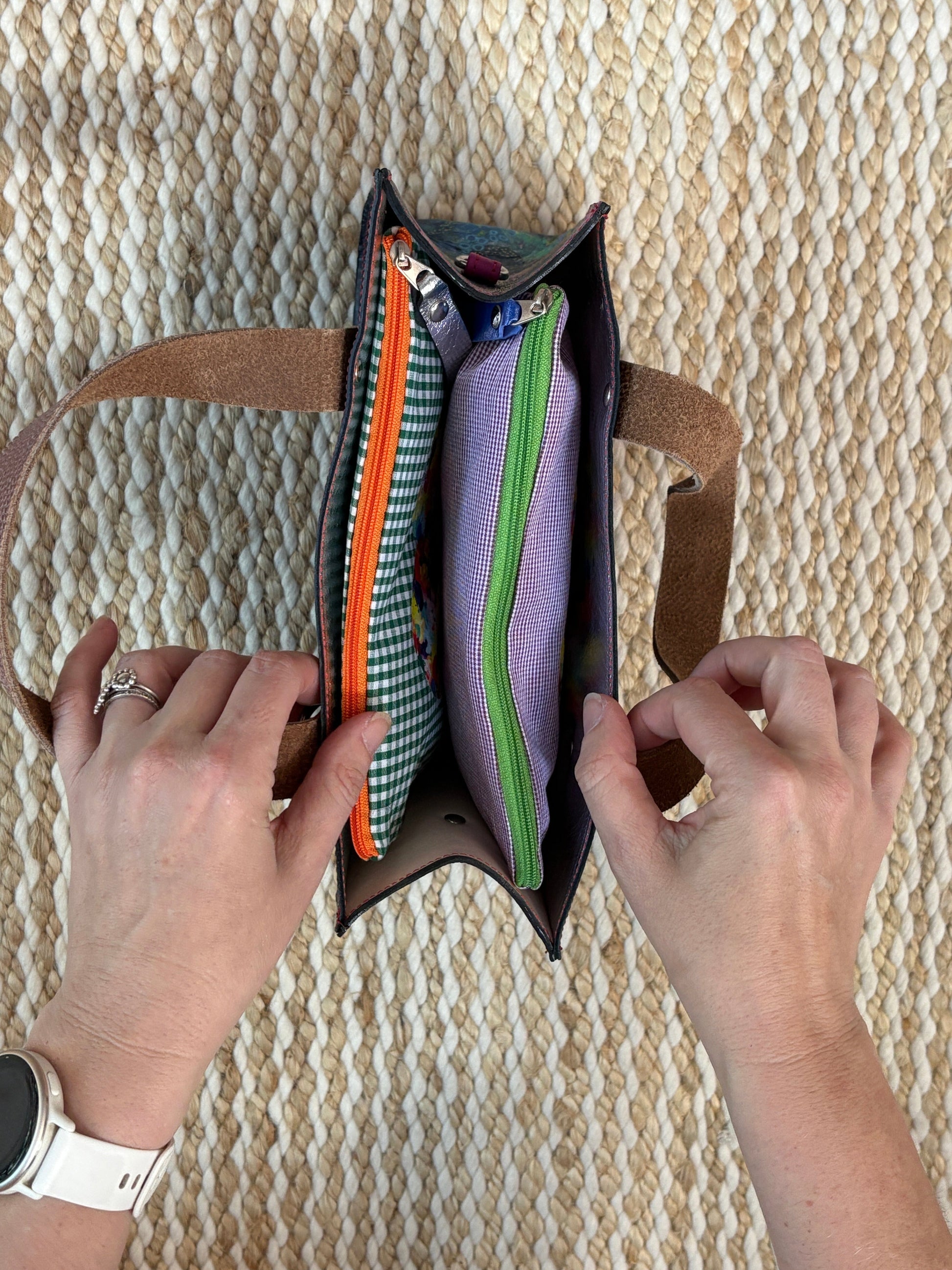 Please note this listing is for the leather tote bag, strap and two Exclusive zippy pouches