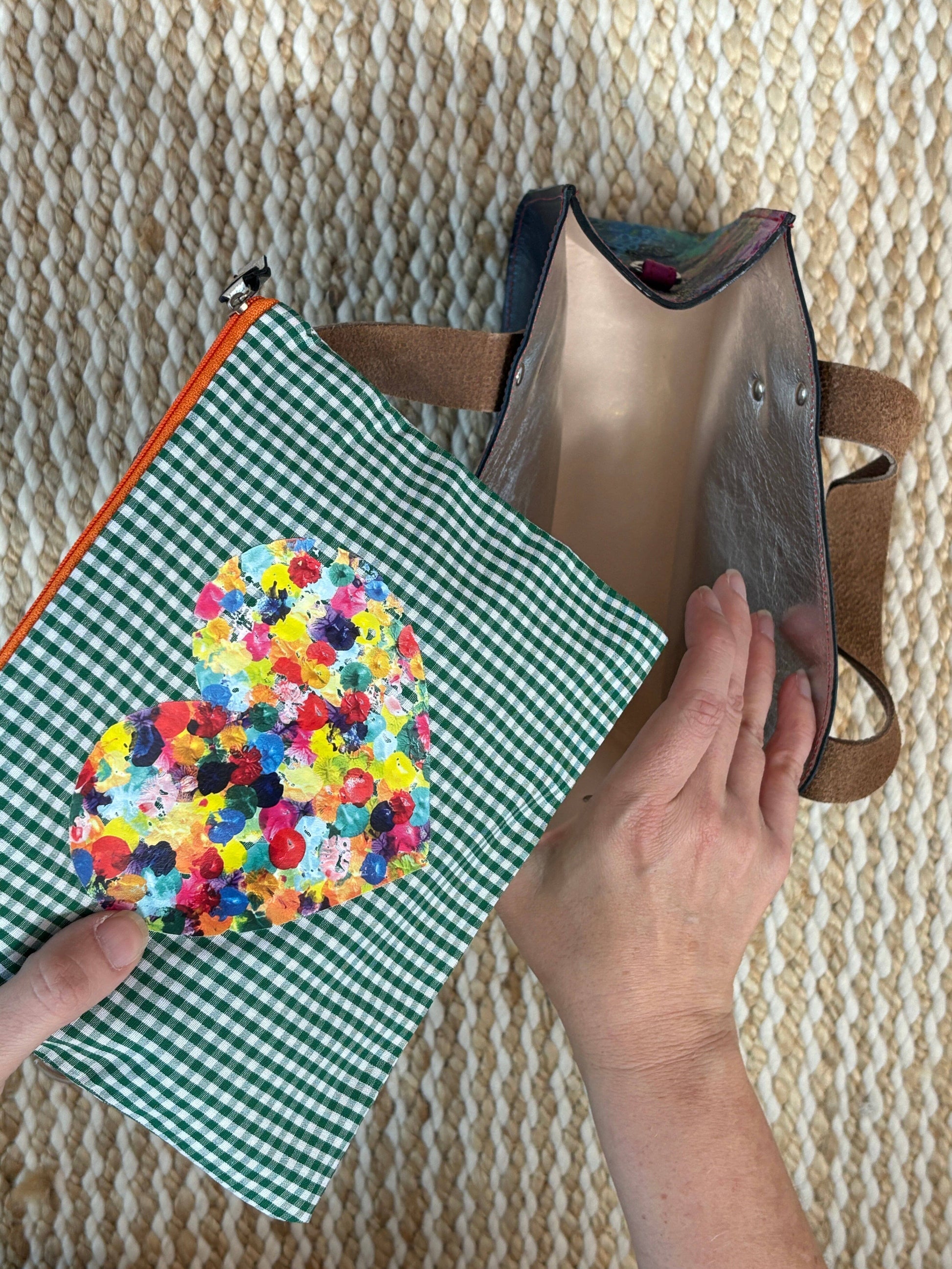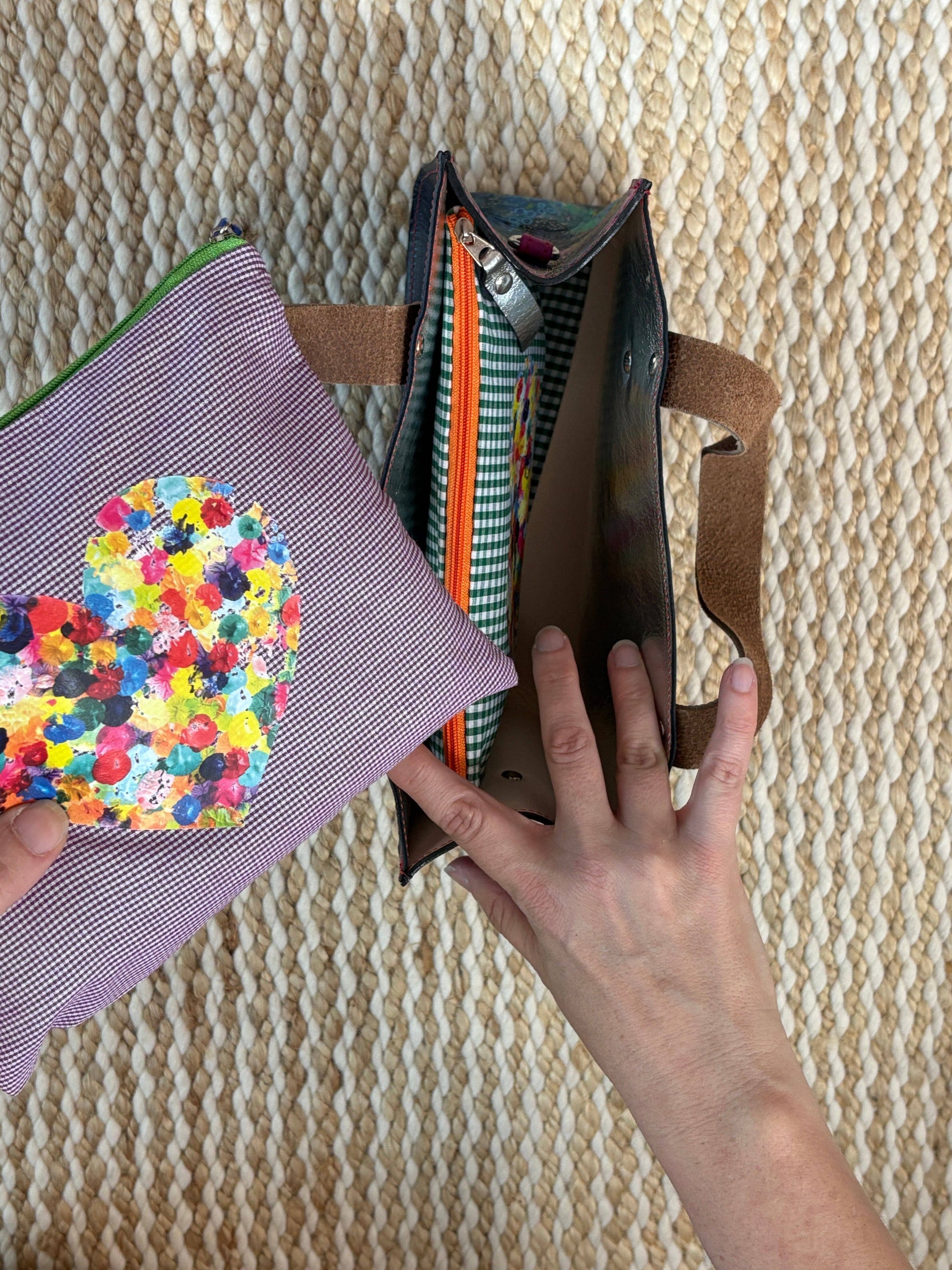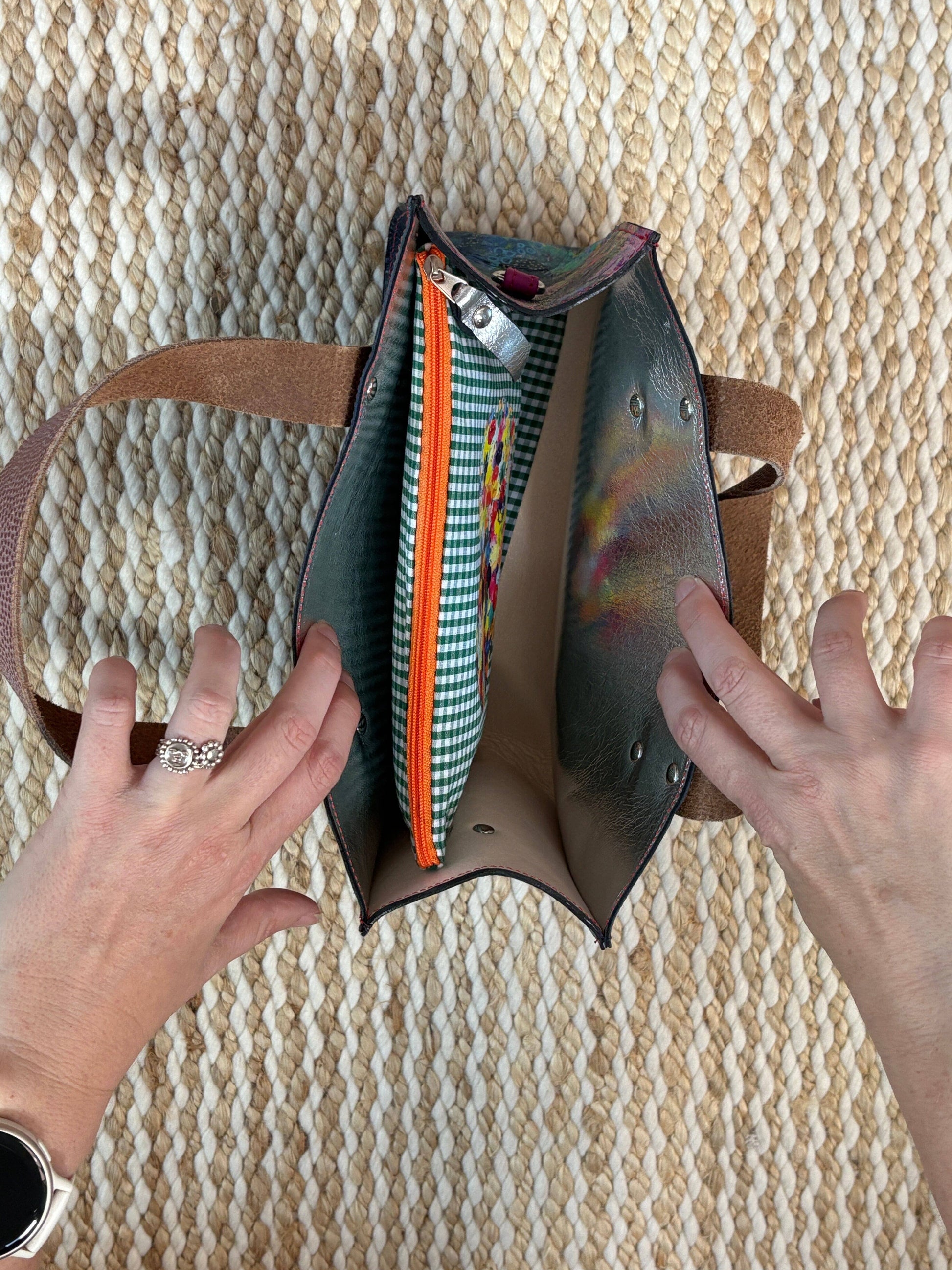 Please note this listing is for the leather tote bag, two Exclusive zippy pouches and strap