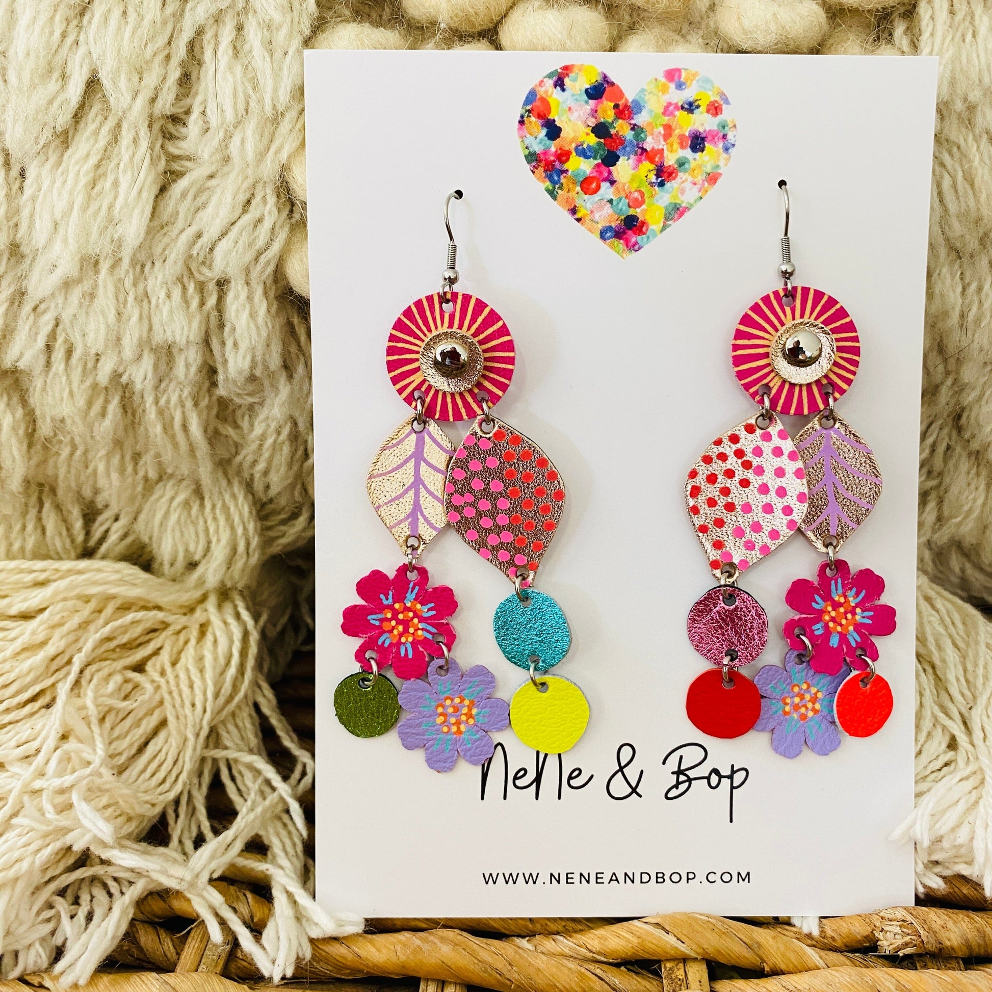Bouquet of Blooms - Mega 1 - Leather Earrings