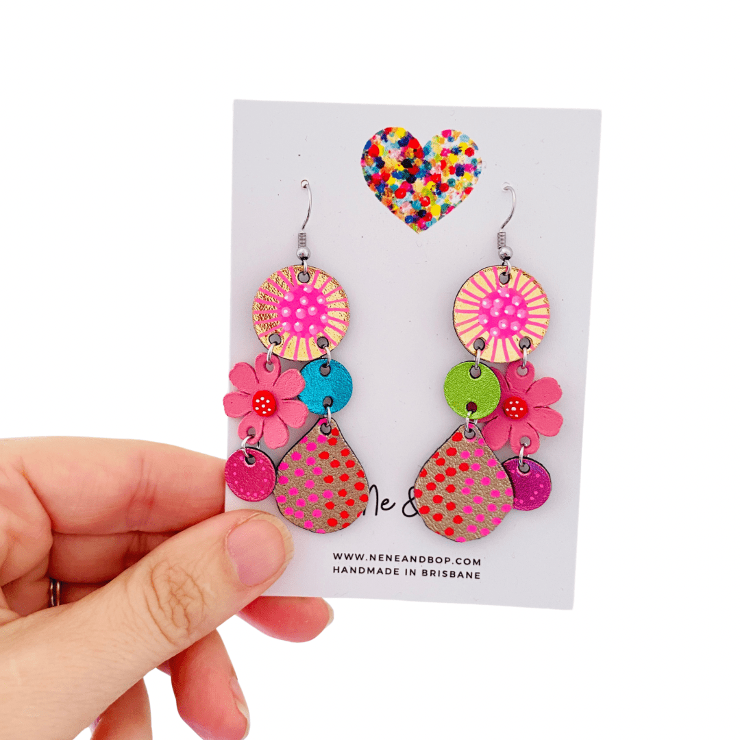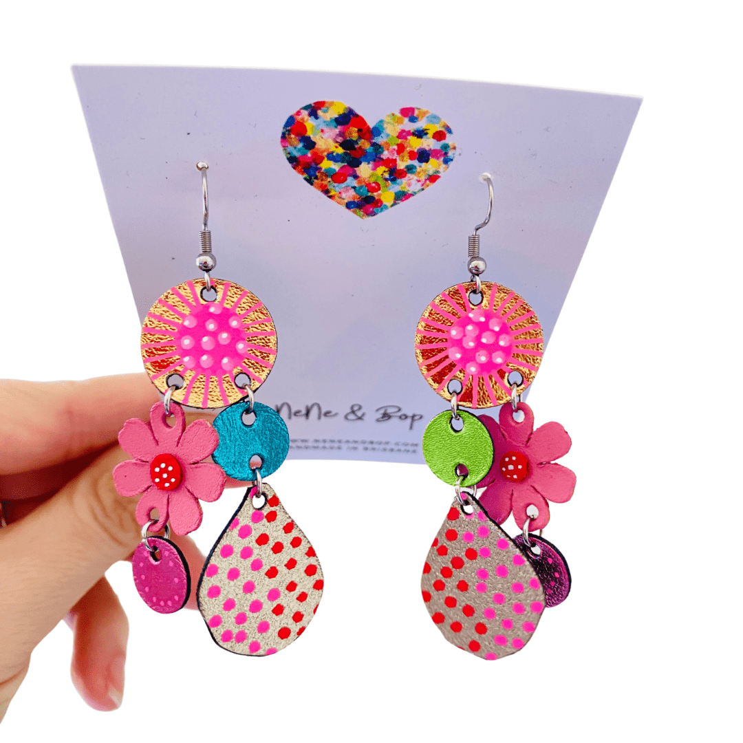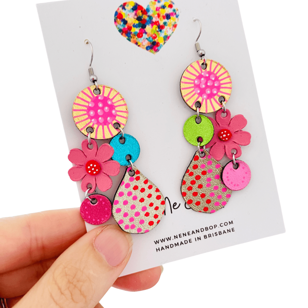 Bouquet of Blooms - Midi Pink- Leather Earrings