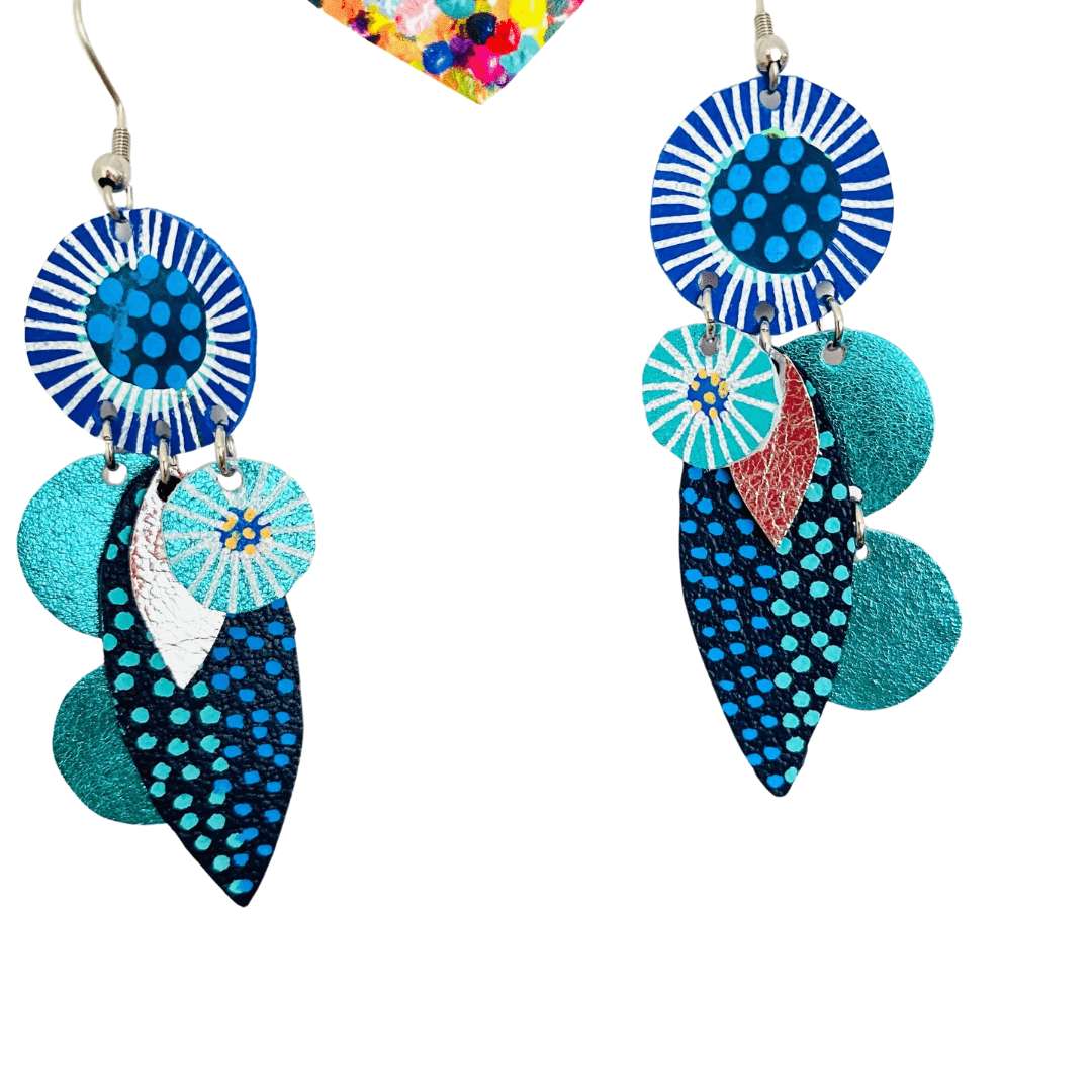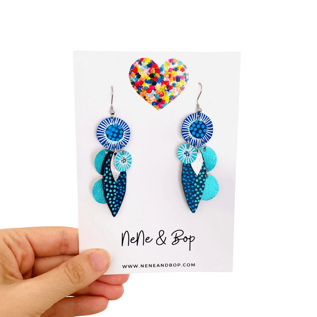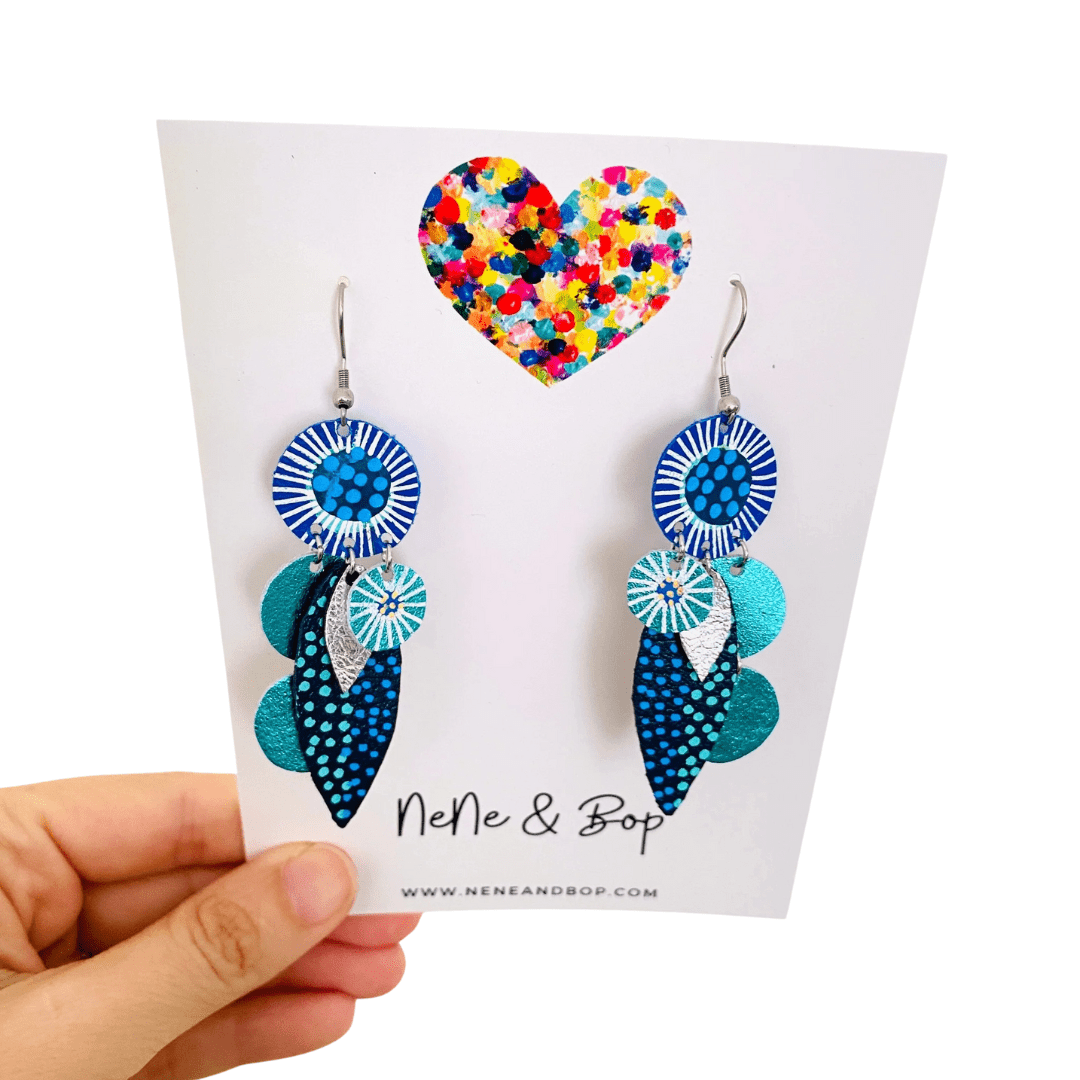 Bud Two Drops - Blue/Silver/Aqua- Leather Earrings