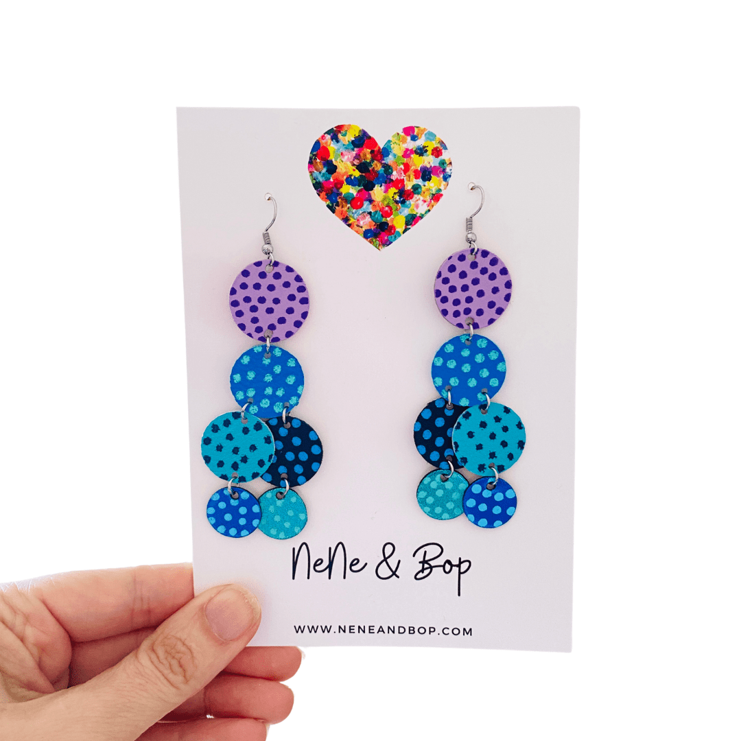 Hand painted with leather paint and minute details, this collection of earrings has been inspired and created from leather remnants that would have previously been discarded.