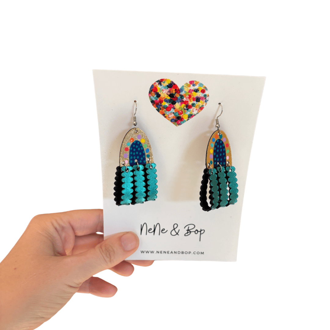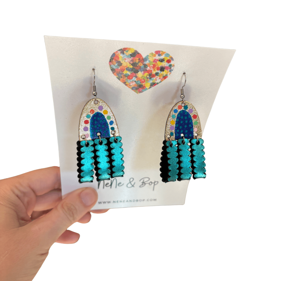 Dimensional Rainbows - Blue - Midi - Leather Earrings Limited Edition