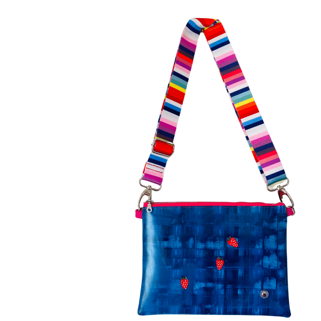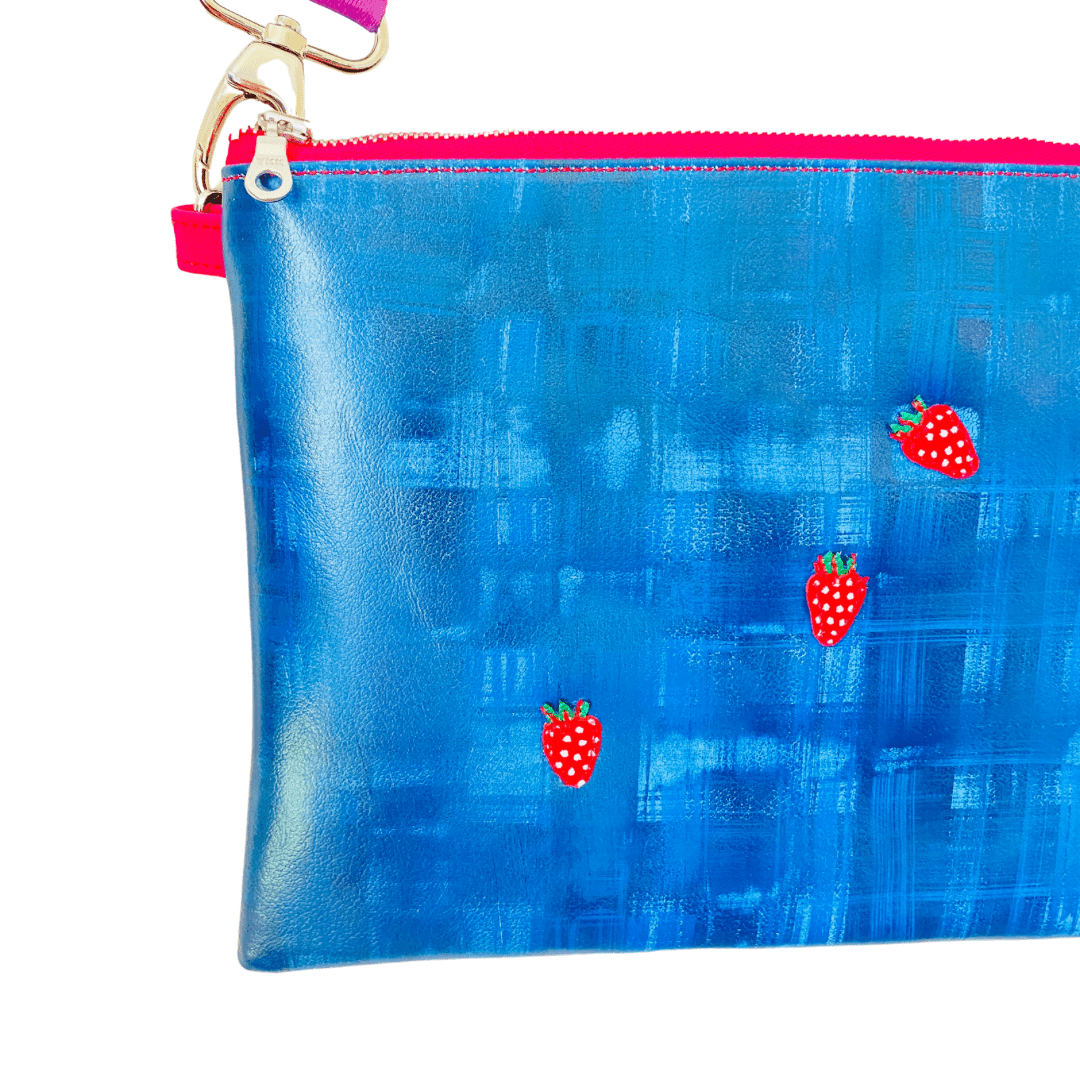 Hand-painted Strawberry Picnic - Leather Purse Plus+