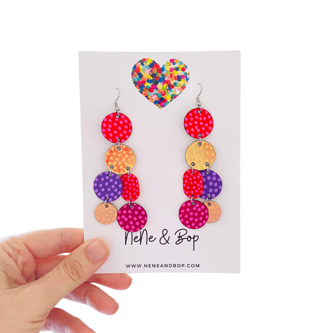 Hand painted with leather paint and minute details, this collection of earrings has been inspired and created from leather remnants that would have previously been discarded.