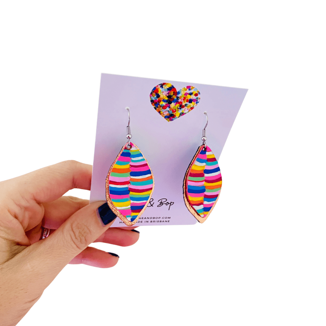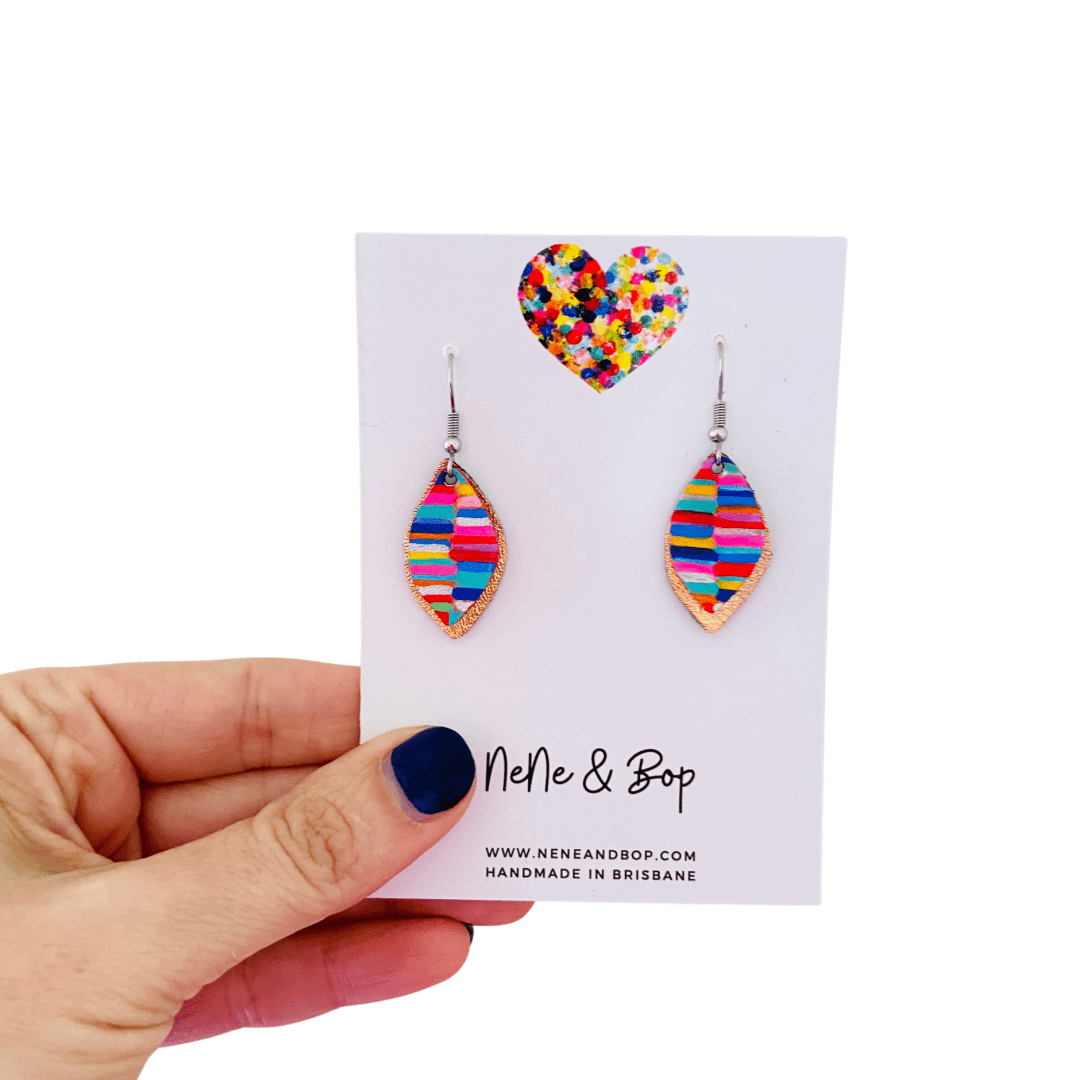 Leaf Rainbow Stripes Hand Painted Earrings - Various sizes