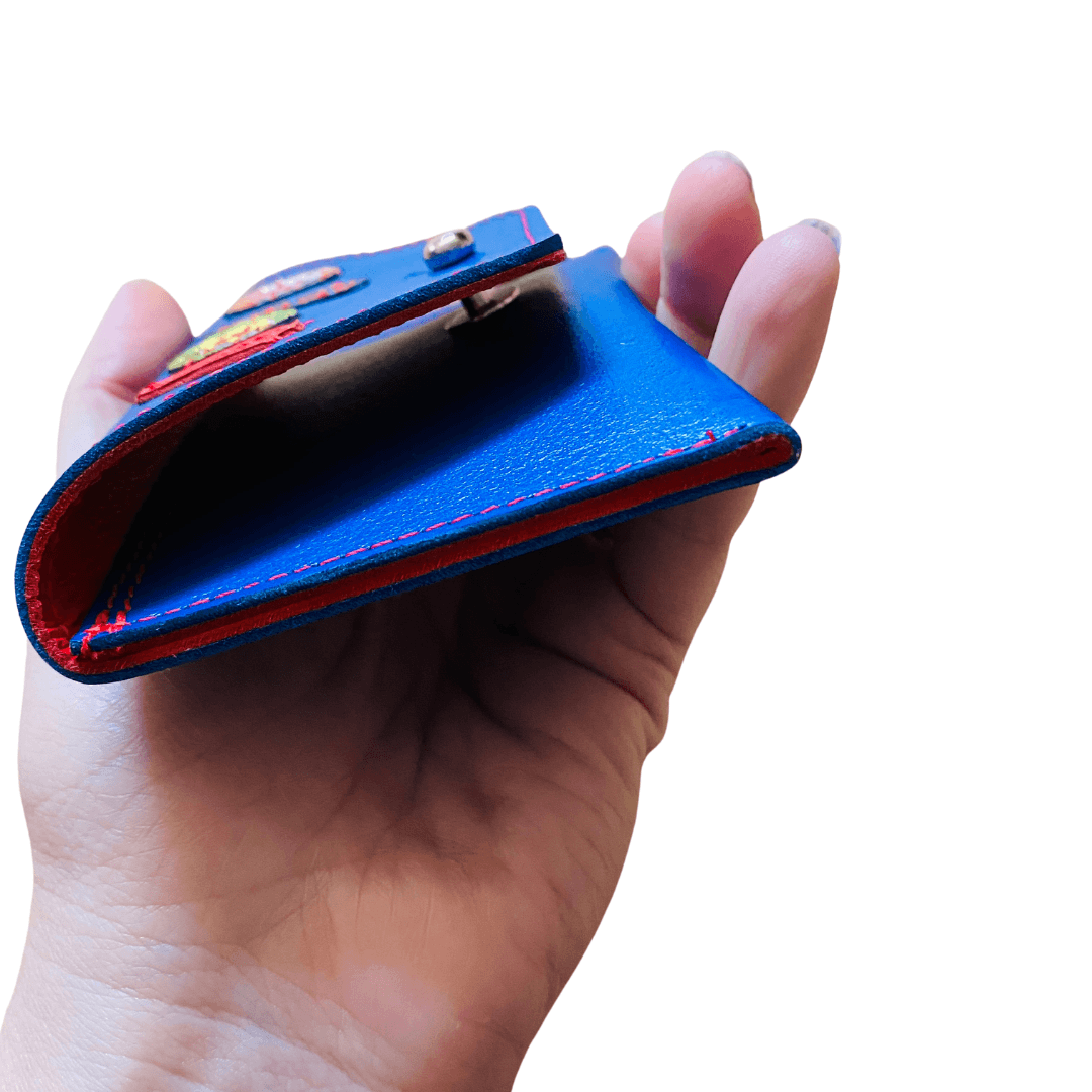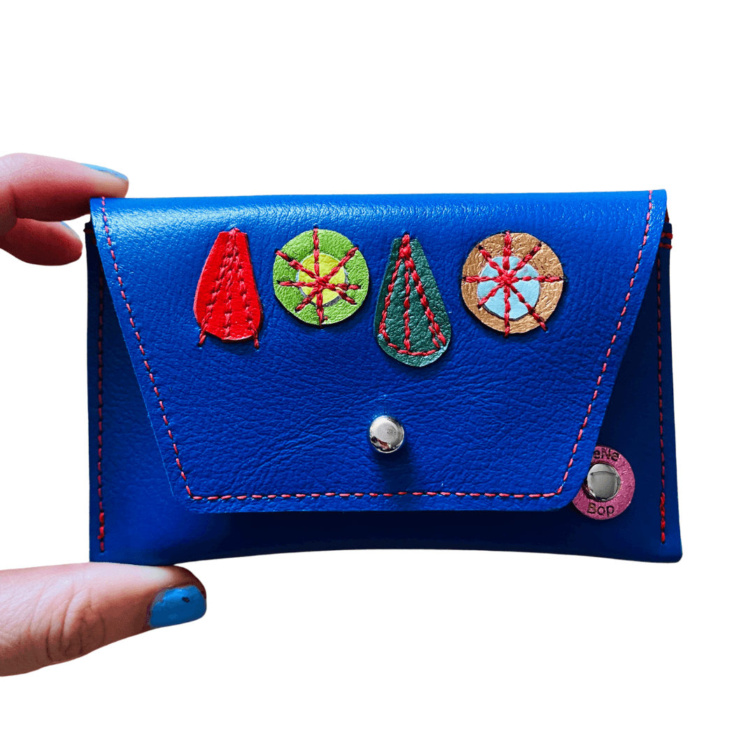Leather Pocket Purse - Rich Blue Buds and Drops