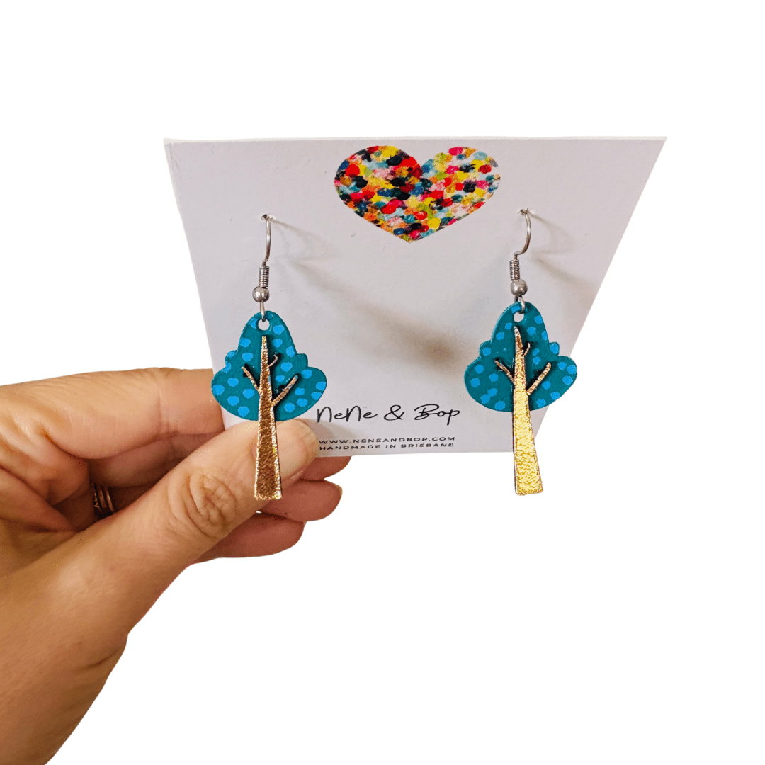 Hand cut, layered with Rose Gold leather and hand painted minute details, these earrings have been created from leather remnants remaining after bag are construction.