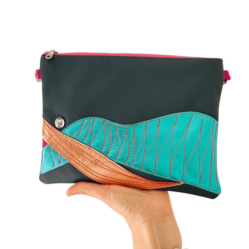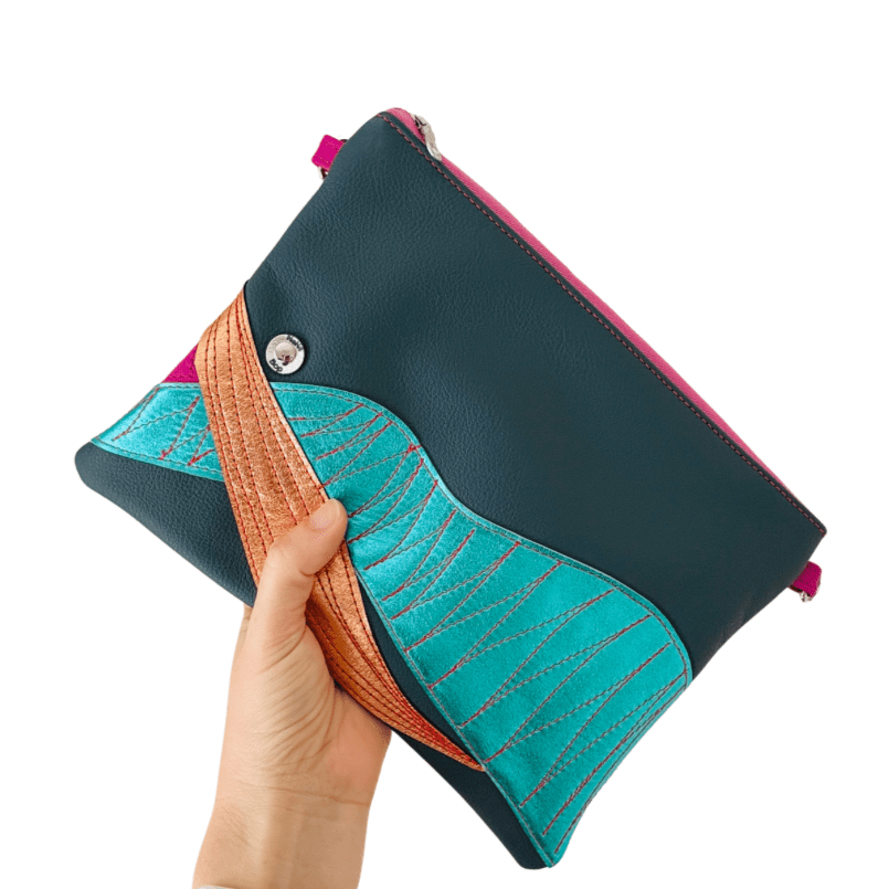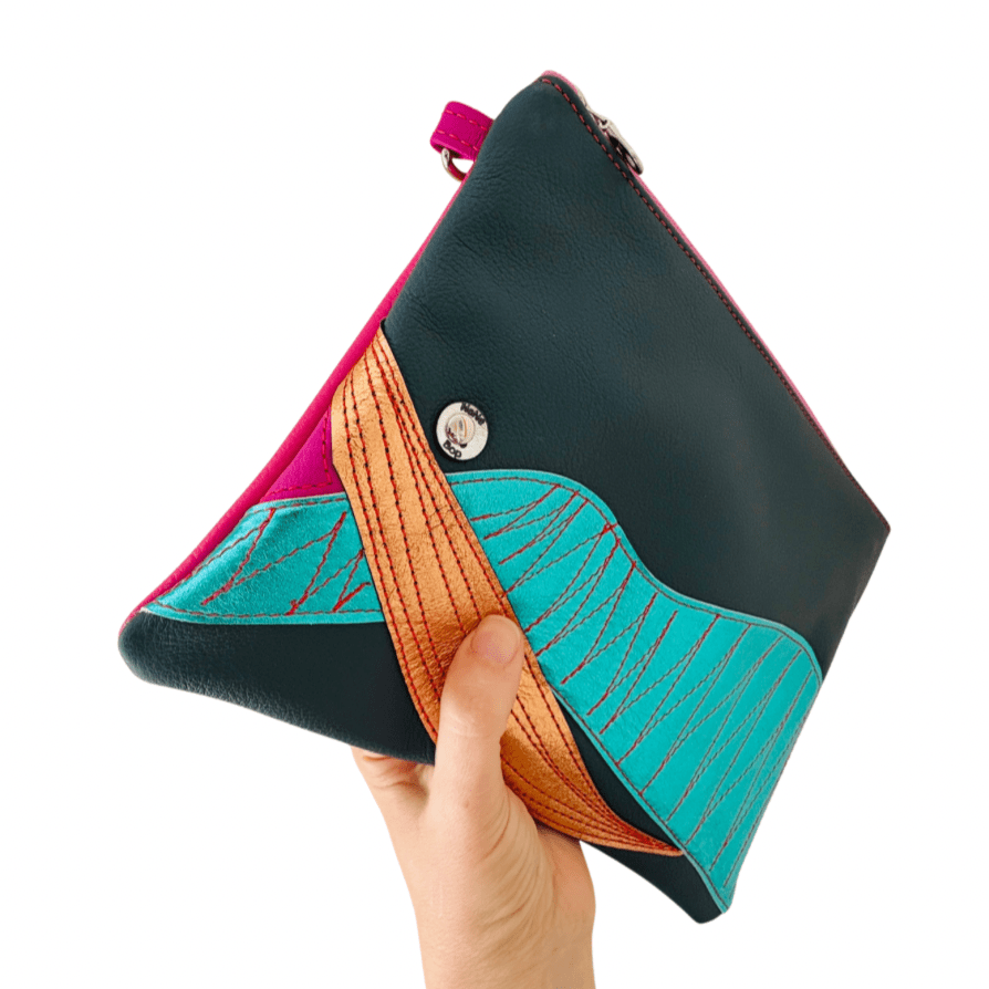 Each bag has been created using sustainable kangaroo leather with our signature collaged detailing. All pieces are one of a kind creations handmade in Brisbane and released as a collection of small batch designs.