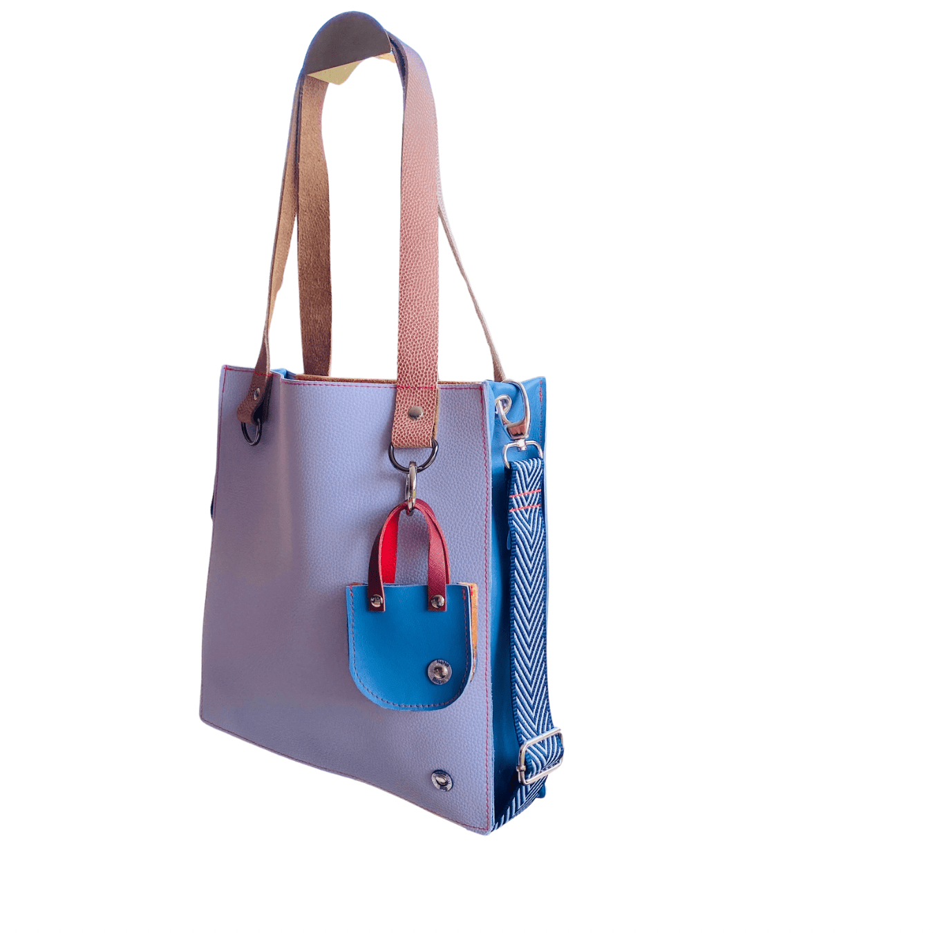 Mini Leather Tote Bag Charm – Tiny Tote, Big Style Blue/Rose Gold