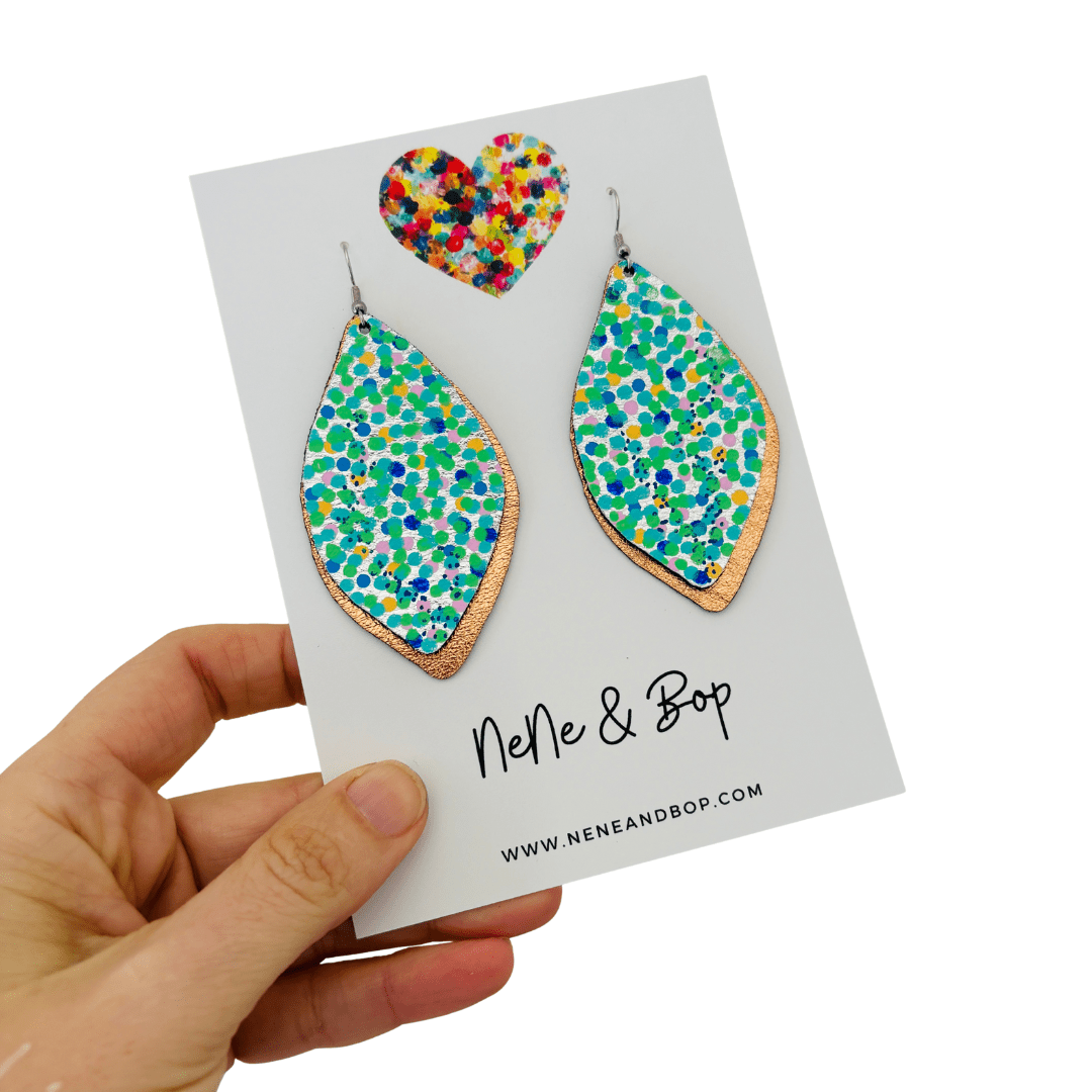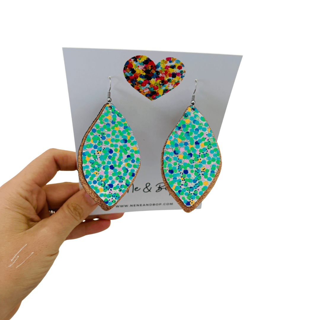 Opal Leaf Hand Painted Earrings Green - Mega