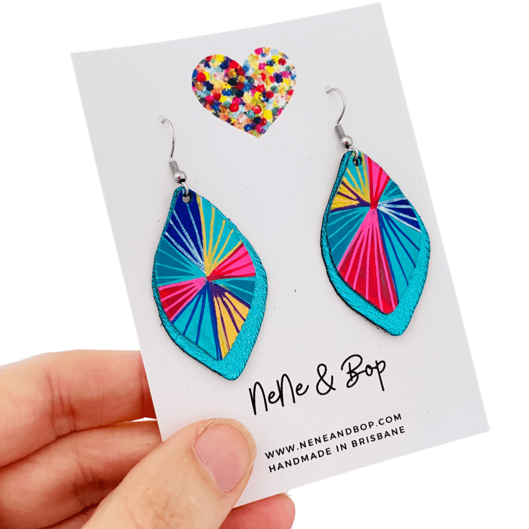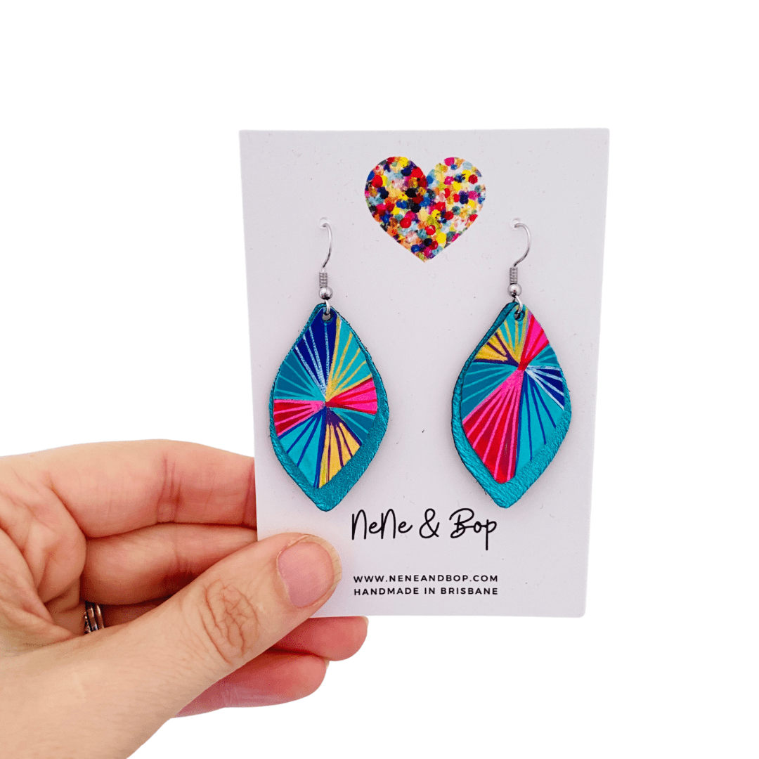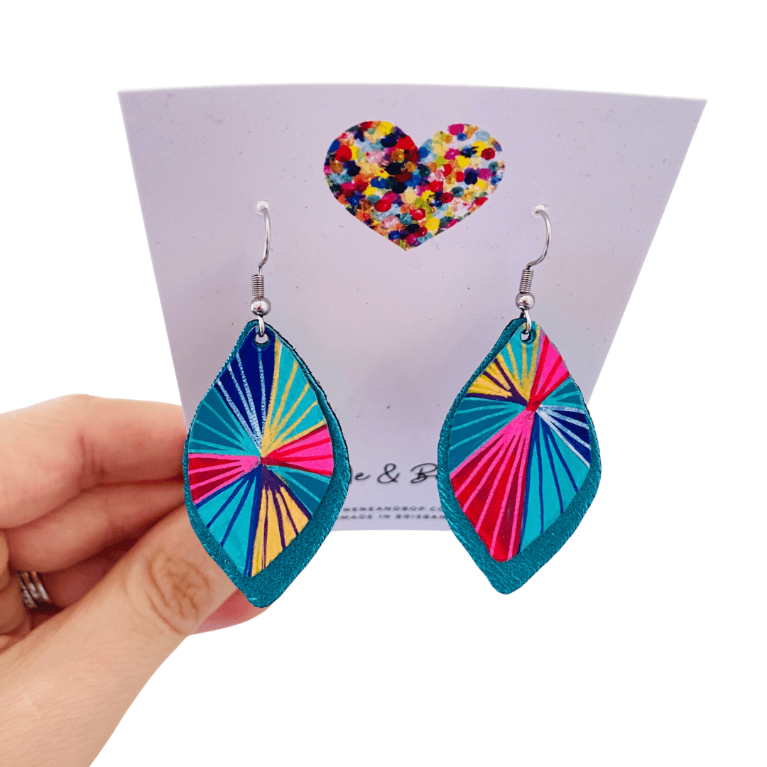 Hand cut, layered with chrome finished kangaroo leather and hand painted minute details, these earrings have been created from leather remnants remaining after bag are construction.